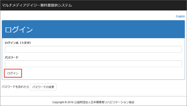 デイジー教科書のダウンロードに際しては、申請手続きで入手したログイン名とご自身で設定したパスワードが必要です。