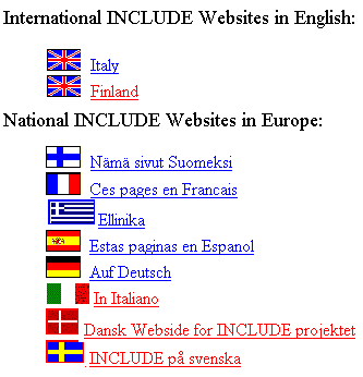 The INCLUDE project analyses the information that is available and creates links to high quality relevant information in co-operation with INCLUDE. An important source is the WWW pages created by the other Telematics projects, many of them created in co-operation with INCLUDE.