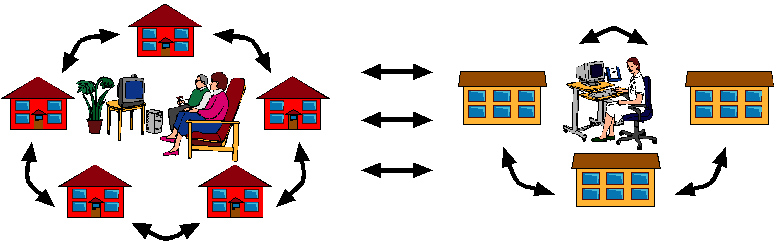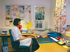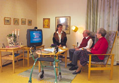 | Professional carers may use an ordinary monitor and keyboard complemented by a camera (figure 3). This will broaden the repertoire of professional activity to include video-telephone and Internet access to enhance research and analogous activity (Emery, 1997). | ![]() Figure 3. Professional consultation |